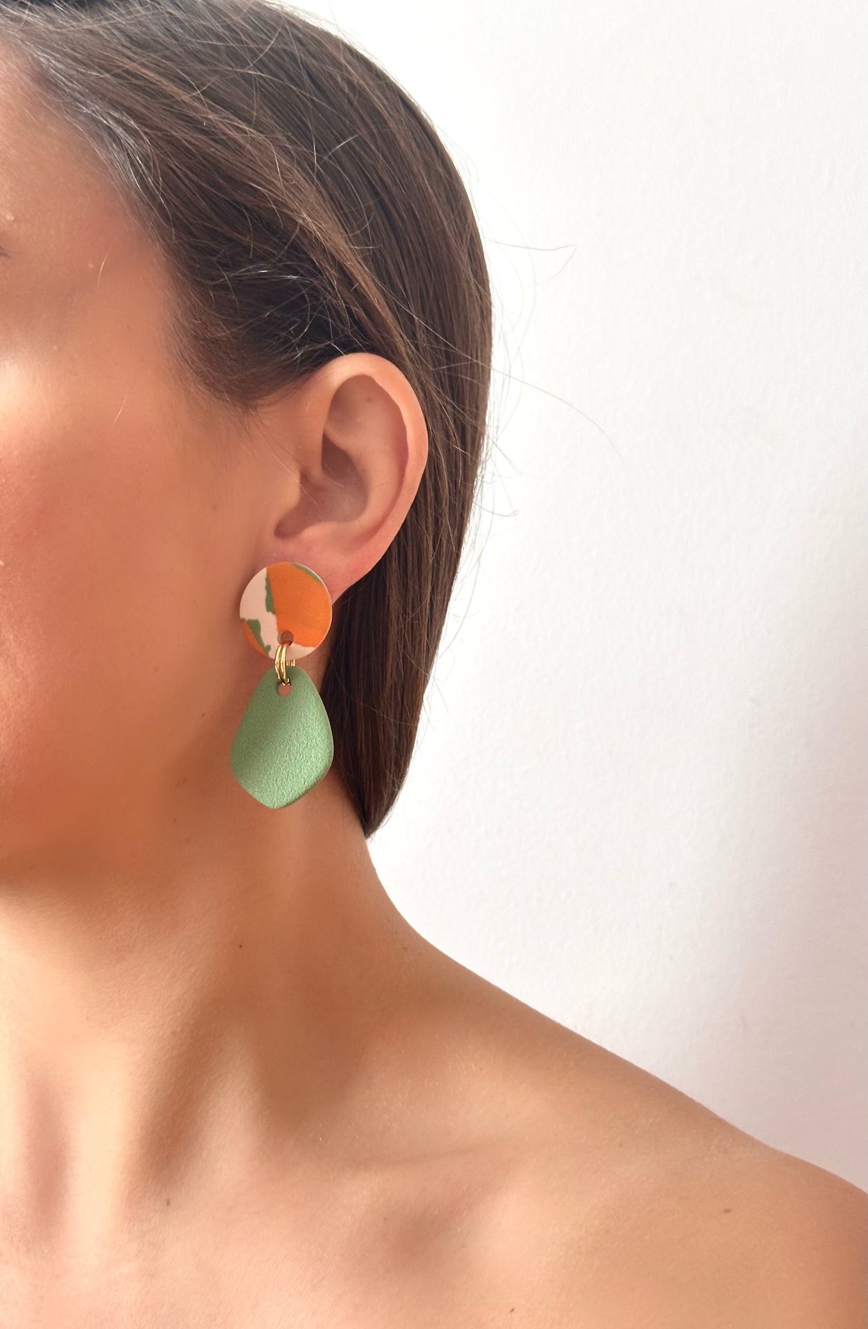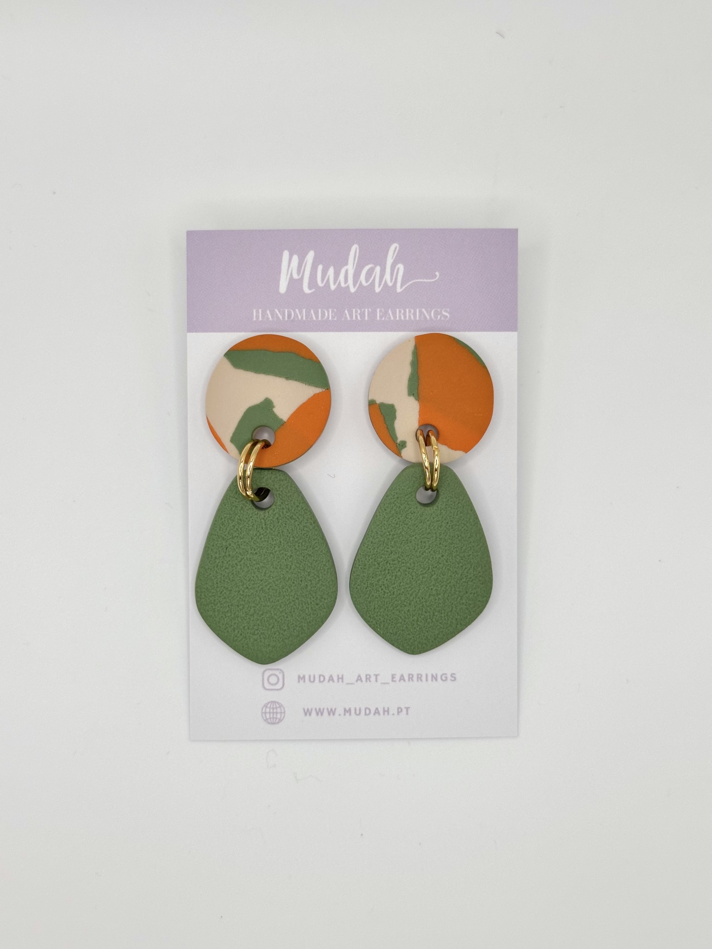 Alice - verde pistácio laranja e creme 16,00 € Desconto de %. IVA incluído. Partilhar Comprar Contactar 1 unidades em stock Brincos feitos à mão em argila de polímero com componentes em aço inoxidável. Muito resistentes, leves e confortáveis. As cores podem variar ligeiramente das apresentadas devido às diferentes telas de cada dispositivo.