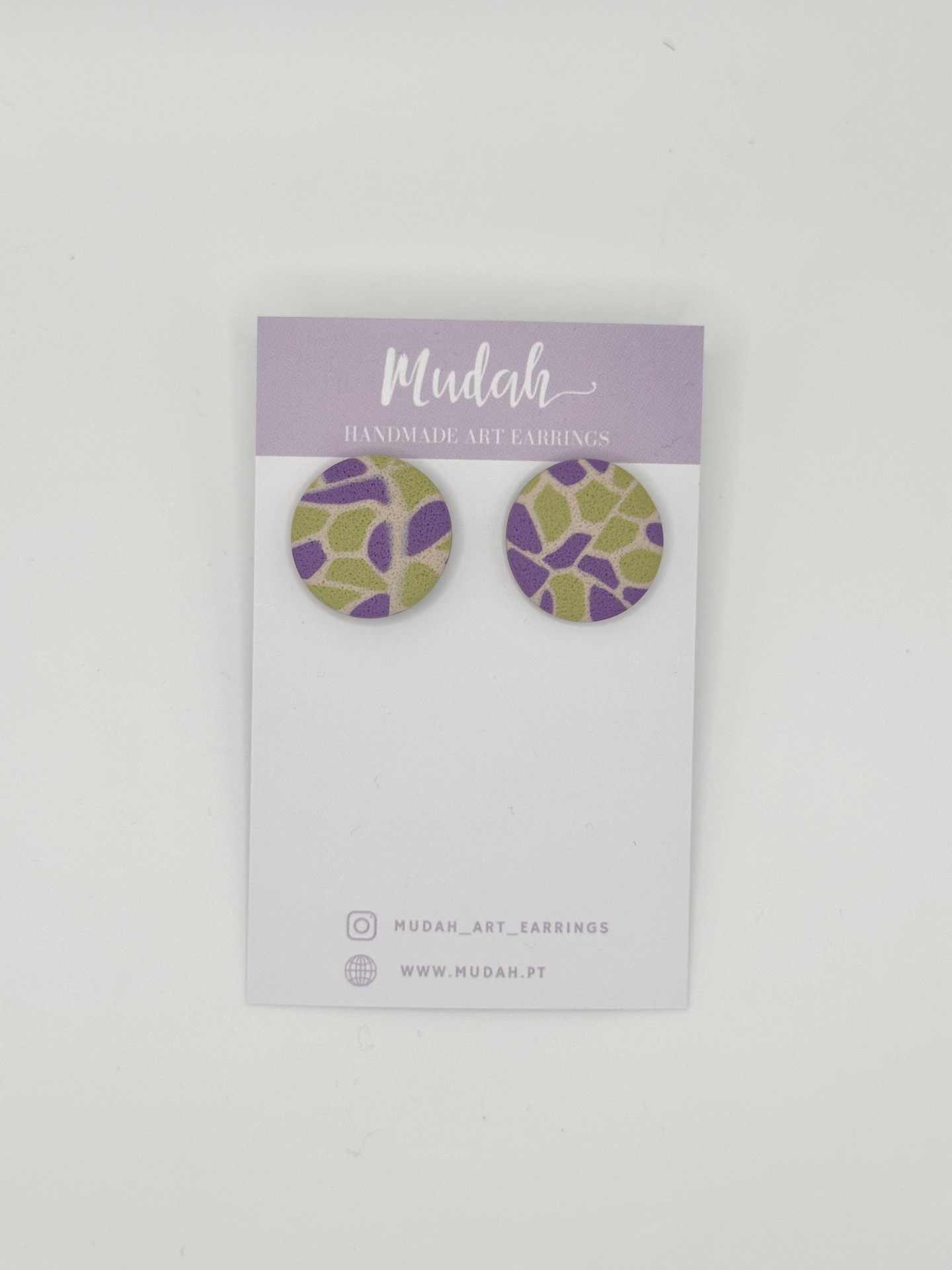 Ana - padrão vitral verde e lilás escuro 10,00 € Desconto de %. IVA incluído. Partilhar Comprar Contactar 2 unidades em stock Brincos feitos à mão em argila de polímero com componentes em aço inoxidável. Muito resistentes, leves e confortáveis. As cores podem variar ligeiramente das apresentadas devido às diferentes telas de cada dispositivo.