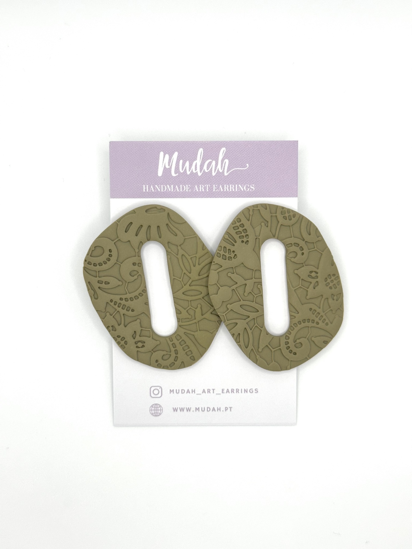 Brincos orgânicos- verde seco 15,00 € Desconto de %. IVA incluído. Partilhar Comprar Contactar 1 unidades em stock Brincos com formato orgânico com textura rendida em verde seco Brincos feitos à mão em argila de polímero com componentes em aço inoxidável. Muito resistentes, leves e confortáveis. As cores podem variar ligeiramente das apresentadas devido às diferentes telas de cada dispositivo.