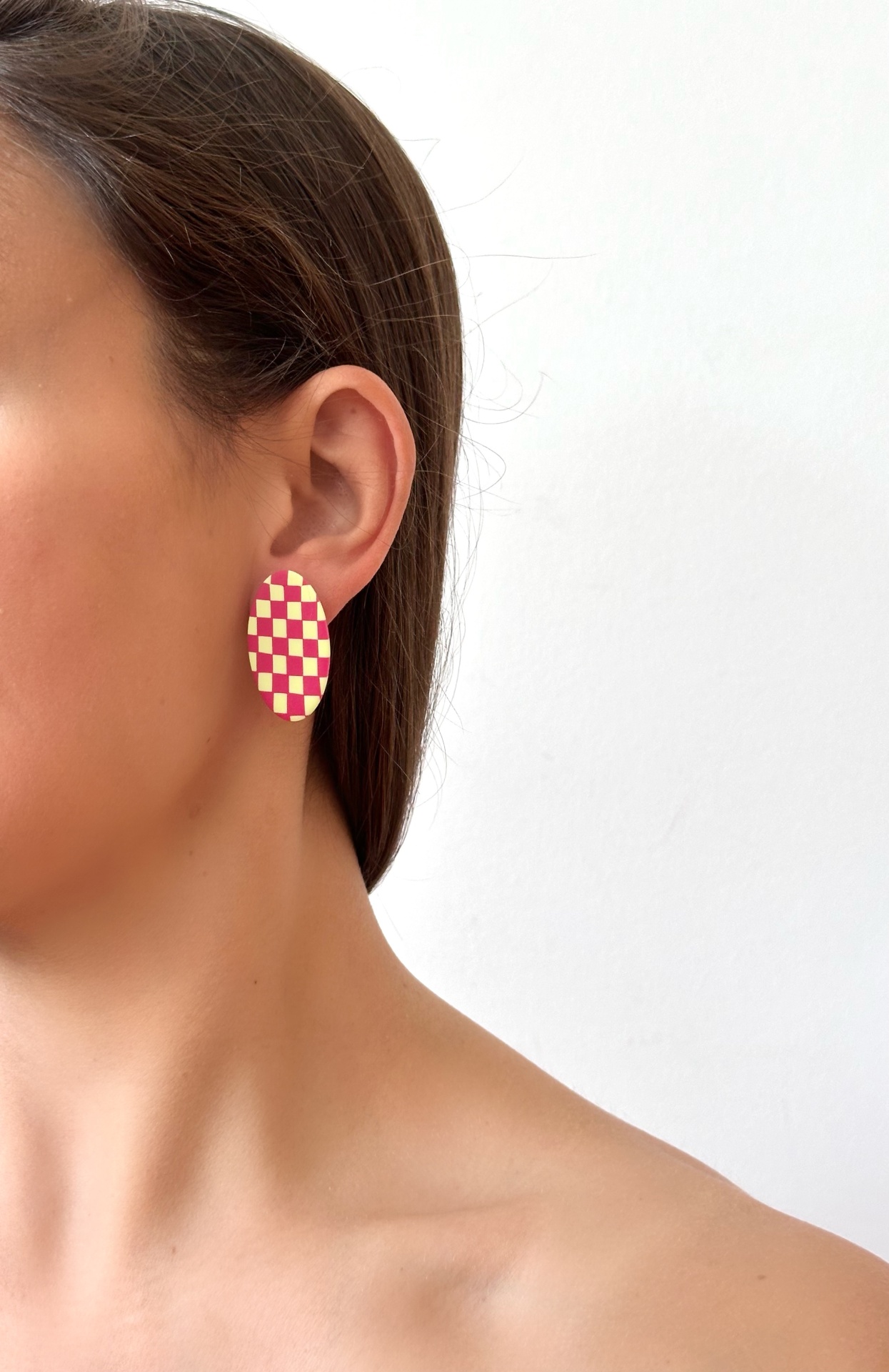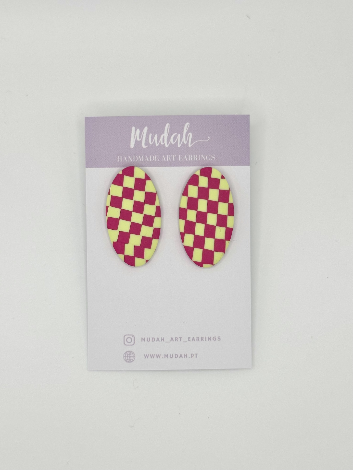 Brincos ovais - quadrados rosa e verde lima 14,00 € Desconto de %. IVA incluído. Partilhar Comprar Contactar 1 unidades em stock Brincos feitos à mão em argila de polímero com componentes em aço inoxidável. Muito resistentes, leves e confortáveis. As cores podem variar ligeiramente das apresentadas devido às diferentes telas de cada dispositivo.
