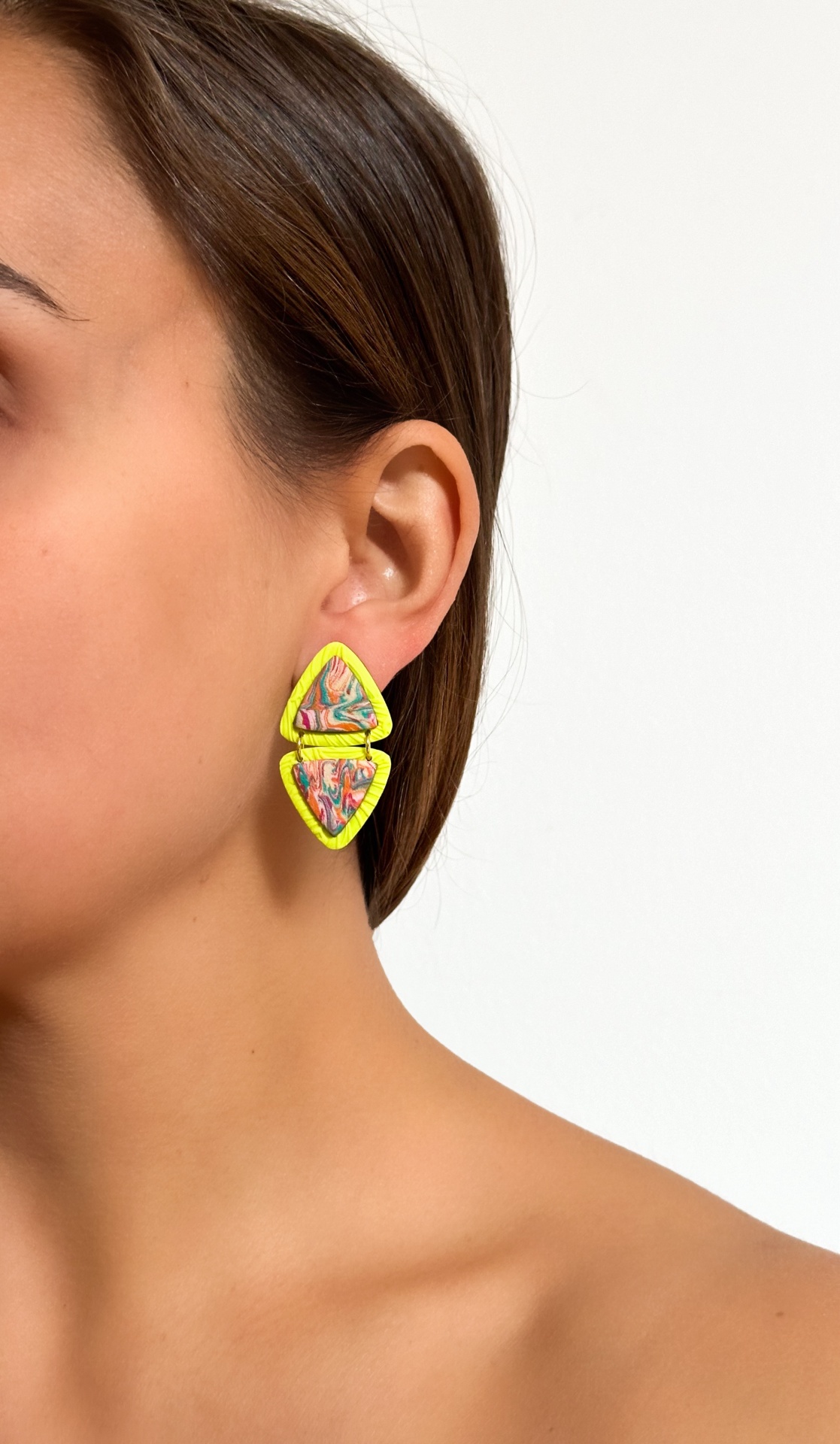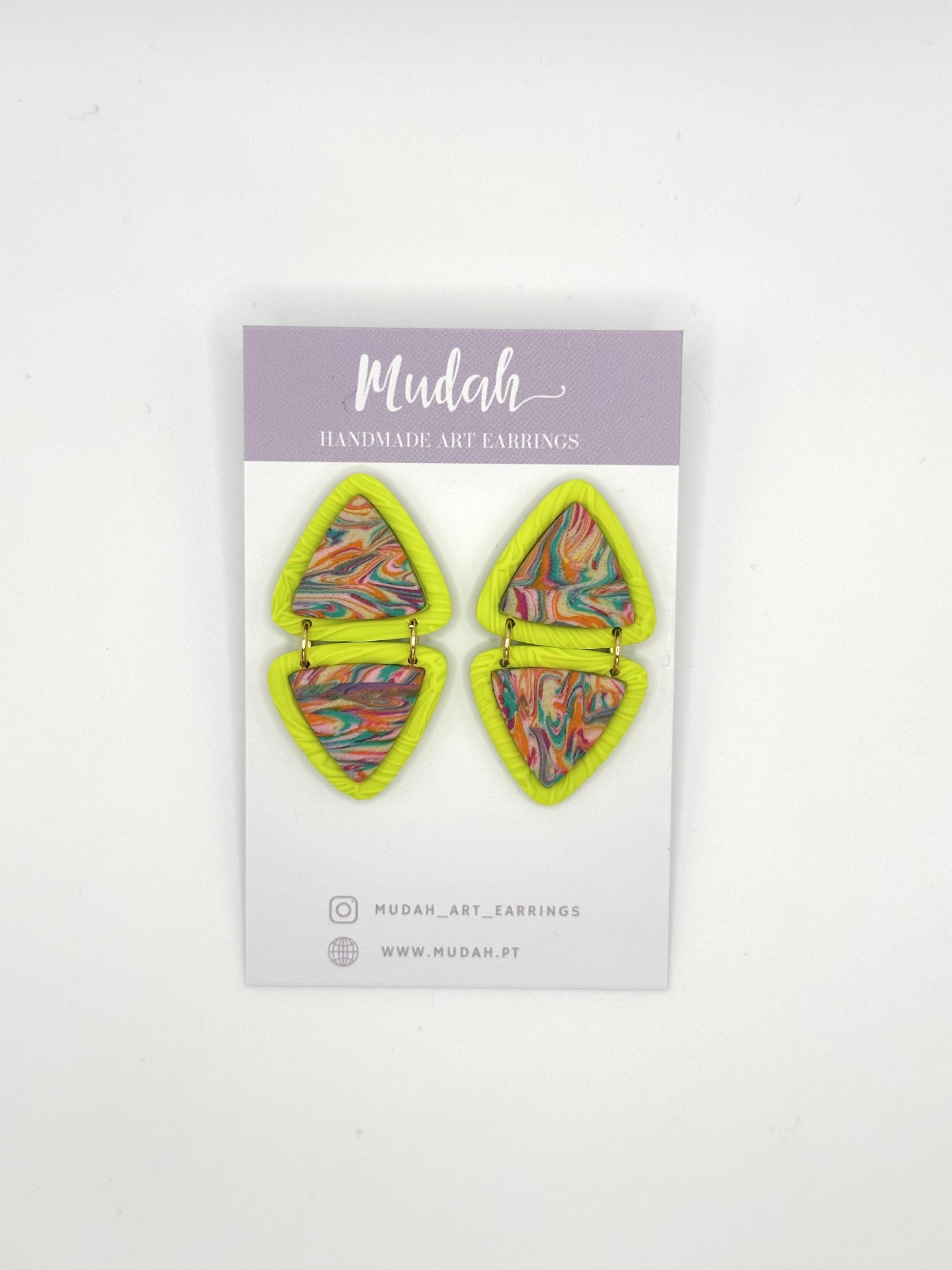 Benedita - padrão colorido 15,00 € Desconto de %. IVA incluído. Partilhar Comprar Contactar 1 unidades em stock Brincos triangulares com padrão colorido e verde lima Brincos feitos à mão em argila de polímero com componentes em aço inoxidável. Muito resistentes, leves e confortáveis. As cores podem variar ligeiramente das apresentadas devido às diferentes telas de cada dispositivo.