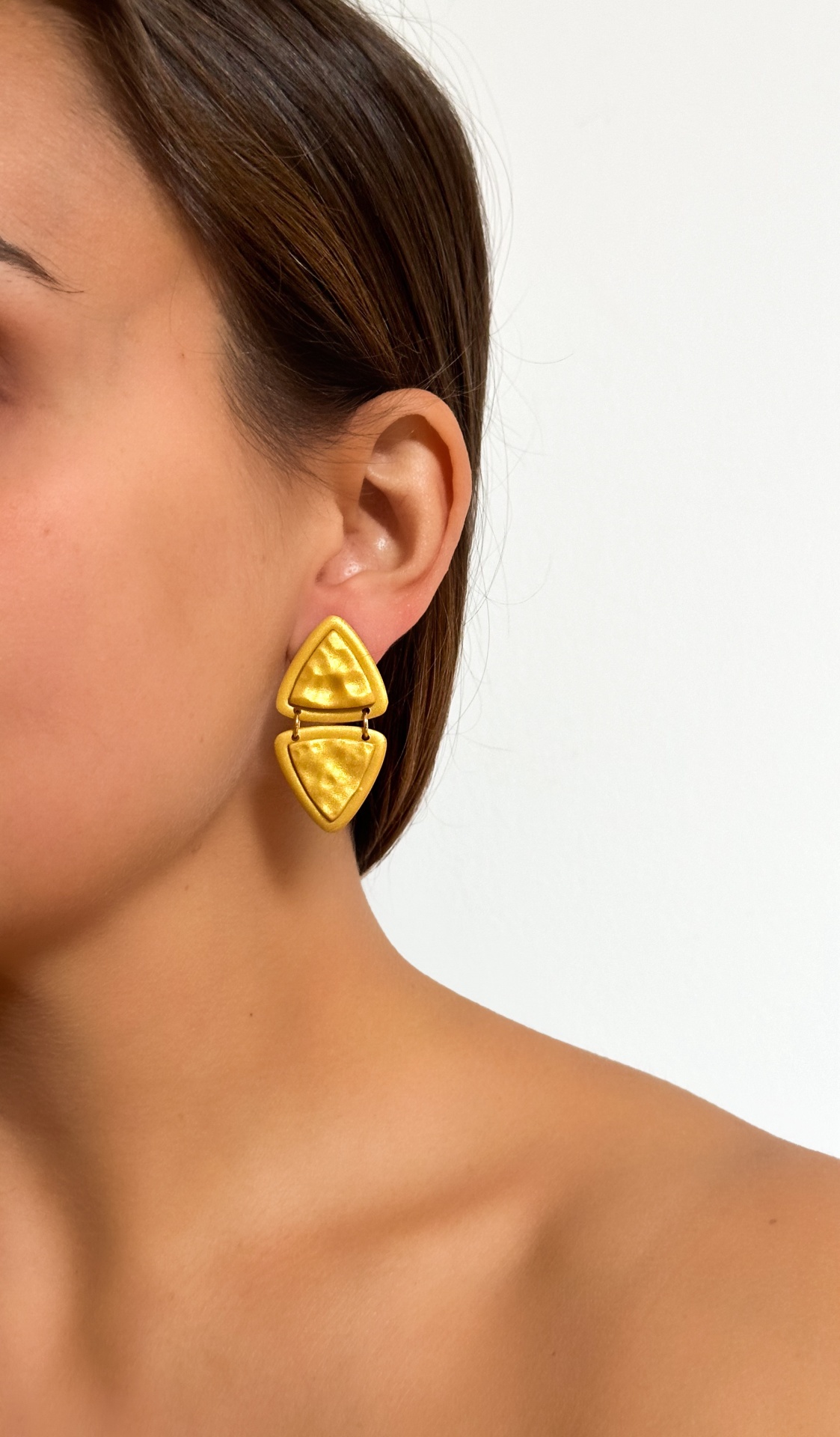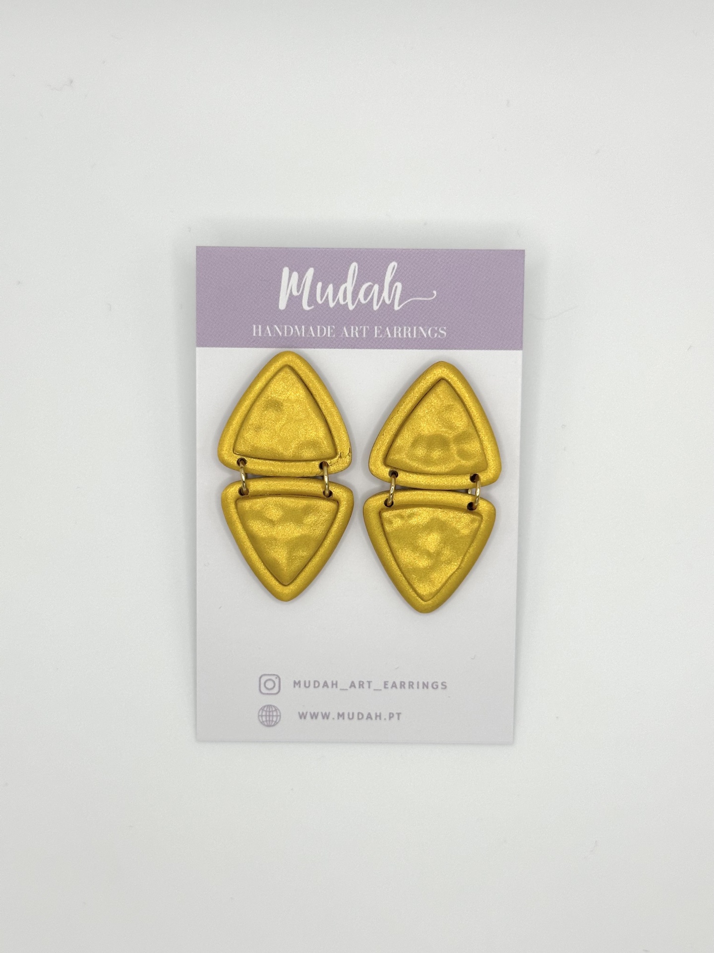 Benedita - dourado 15,00 € Desconto de %. IVA incluído. Partilhar Comprar Contactar 1 unidades em stock Brincos triangulares dourados com textura irregular Brincos feitos à mão em argila de polímero com componentes em aço inoxidável. Muito resistentes, leves e confortáveis. As cores podem variar ligeiramente das apresentadas devido às diferentes telas de cada dispositivo.
