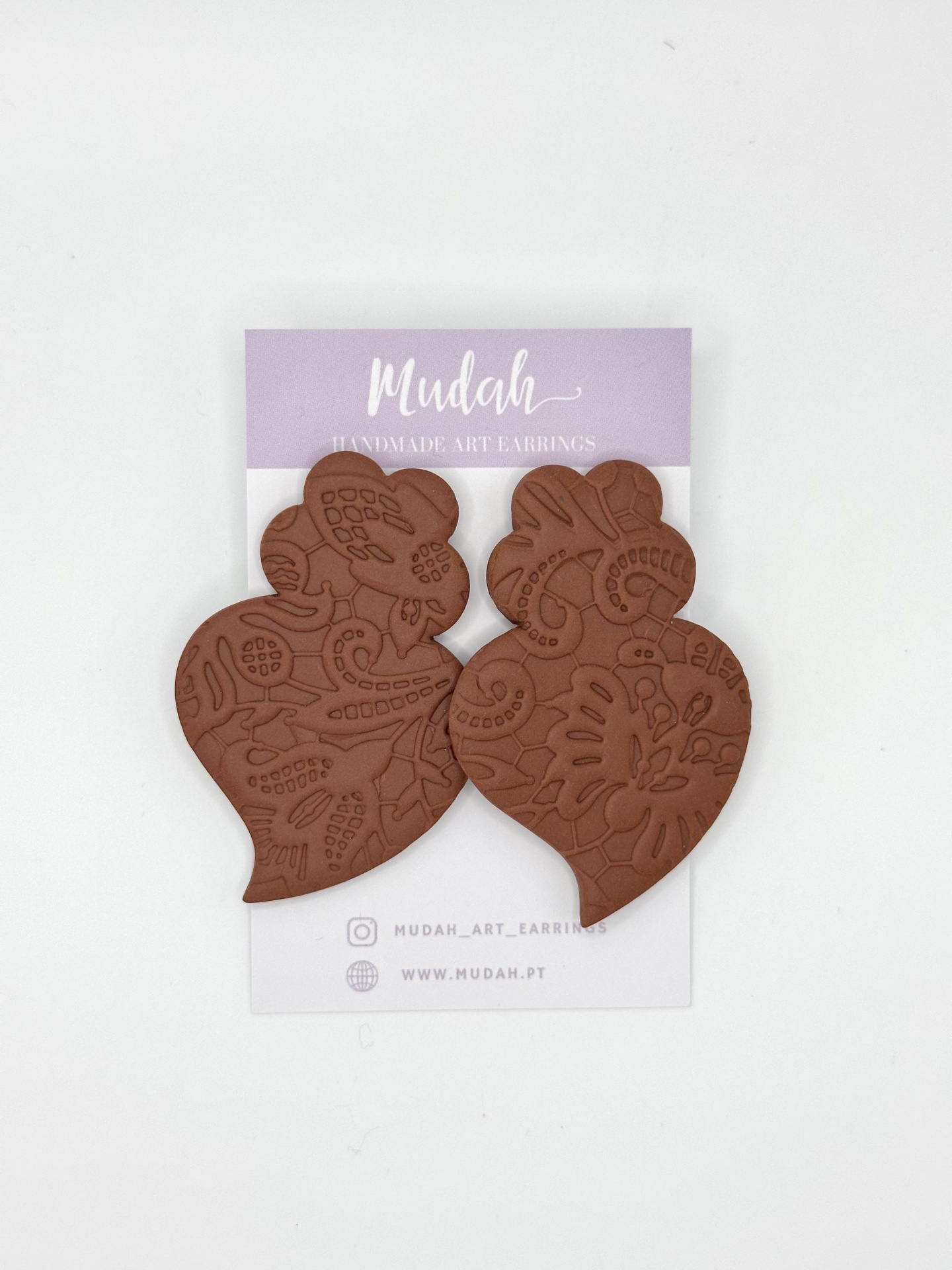 Coração de Viana - castanho 13,60 € 17,00 € Desconto de 20%. IVA incluído. Partilhar O produto encontra-se sem stock. Saldos. Válido de 9 de Janeiro de 2026 às 00:00 até 31 de Janeiro de 2026 às 00:00. Brincos feitos à mão em argila de polímero com componentes em aço inoxidável. Muito resistentes, leves e confortáveis. As cores podem variar ligeiramente das apresentadas devido às diferentes telas de cada dispositivo.