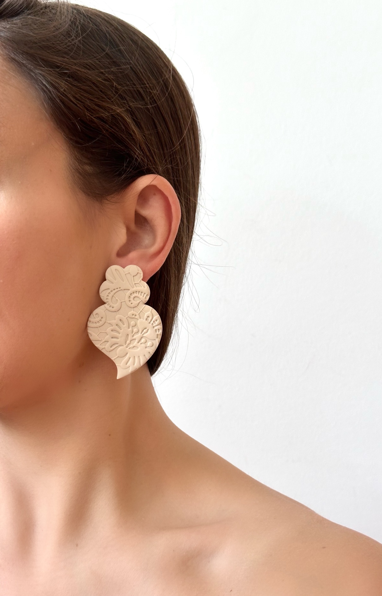 Coração de Viana - creme 13,60 € 17,00 € Desconto de 20%. IVA incluído. Partilhar Comprar Contactar 1 unidades em stock Saldos. Válido de 9 de Janeiro de 2026 às 00:00 até 31 de Janeiro de 2026 às 00:00. Brincos feitos à mão em argila de polímero com componentes em aço inoxidável. Muito resistentes, leves e confortáveis. As cores podem variar ligeiramente das apresentadas devido às diferentes telas de cada dispositivo.