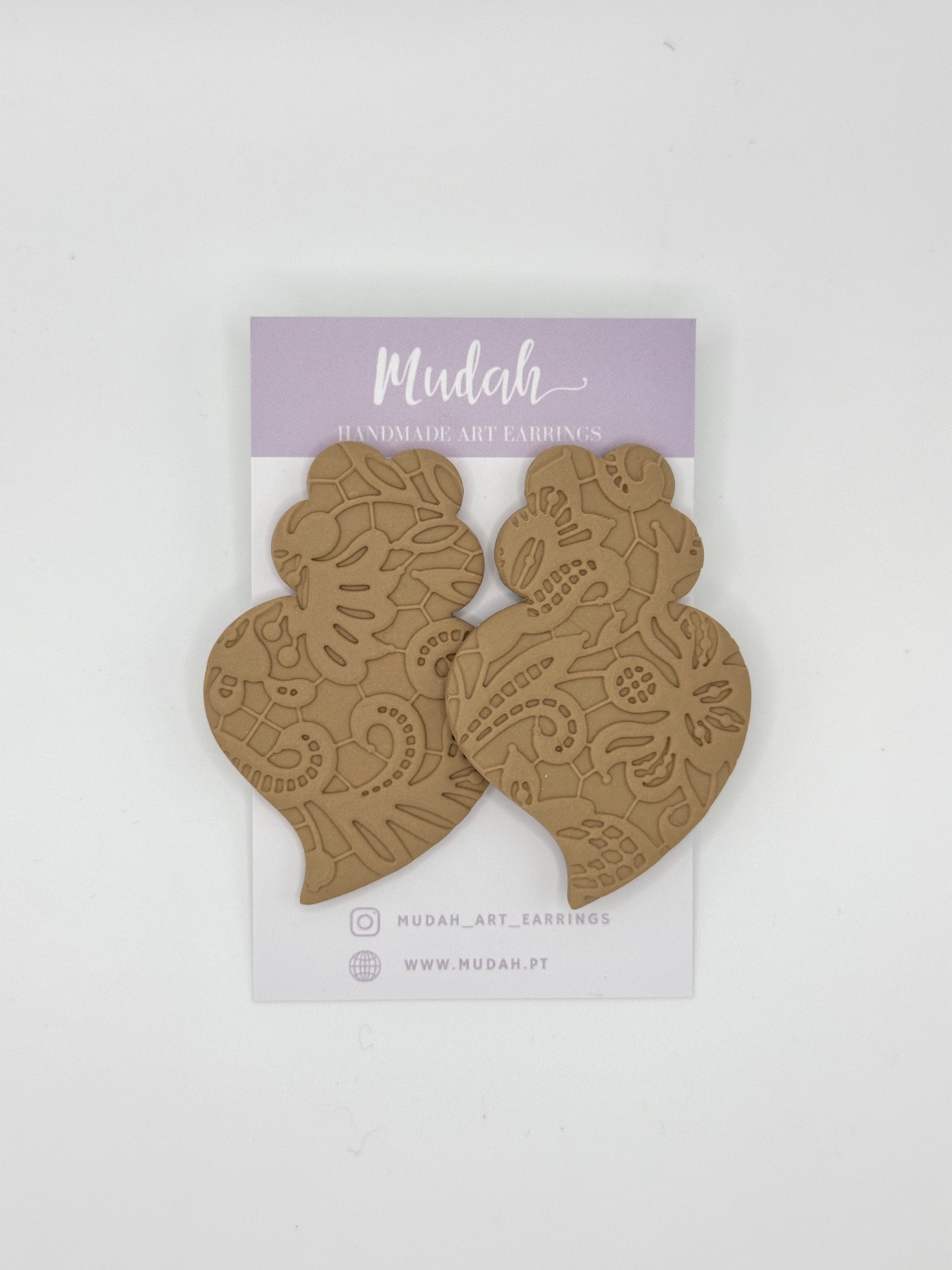 Coração de Viana - creme escuro 13,60 € 17,00 € Desconto de 20%. IVA incluído. Partilhar Comprar Contactar 1 unidades em stock Saldos. Válido de 9 de Janeiro de 2026 às 00:00 até 31 de Janeiro de 2026 às 00:00. Brincos feitos à mão em argila de polímero com componentes em aço inoxidável. Muito resistentes, leves e confortáveis. As cores podem variar ligeiramente das apresentadas devido às diferentes telas de cada dispositivo.