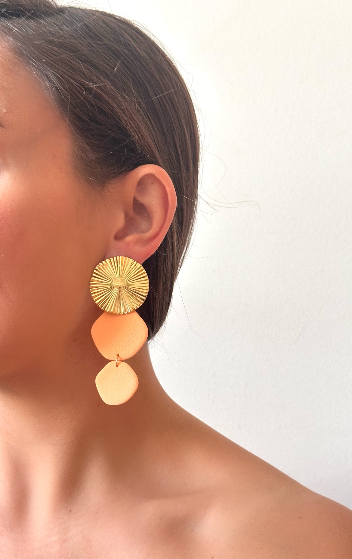Isa - dourado e coral 19,00 € Desconto de %. IVA incluído. Partilhar O produto encontra-se sem stock. Brincos feitos à mão em argila de polímero com componentes em aço inoxidável. Muito resistentes, leves e confortáveis. As cores podem variar ligeiramente das apresentadas devido às diferentes telas de cada dispositivo.