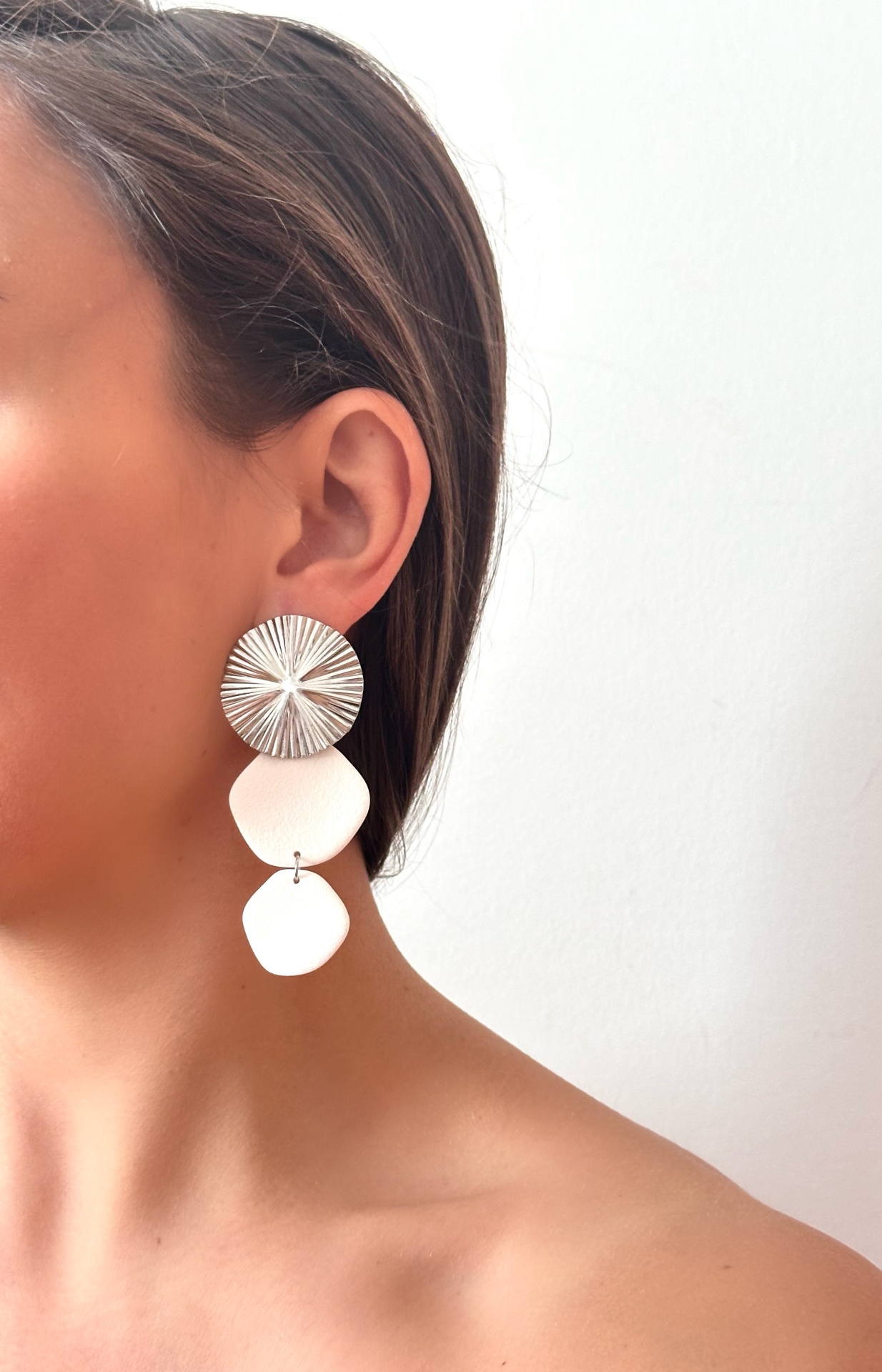 Isa - prateado e branco 19,00 € Desconto de %. IVA incluído. Partilhar Comprar Contactar 1 unidades em stock Brincos feitos à mão em argila de polímero com componentes em aço inoxidável. Muito resistentes, leves e confortáveis. As cores podem variar ligeiramente das apresentadas devido às diferentes telas de cada dispositivo.