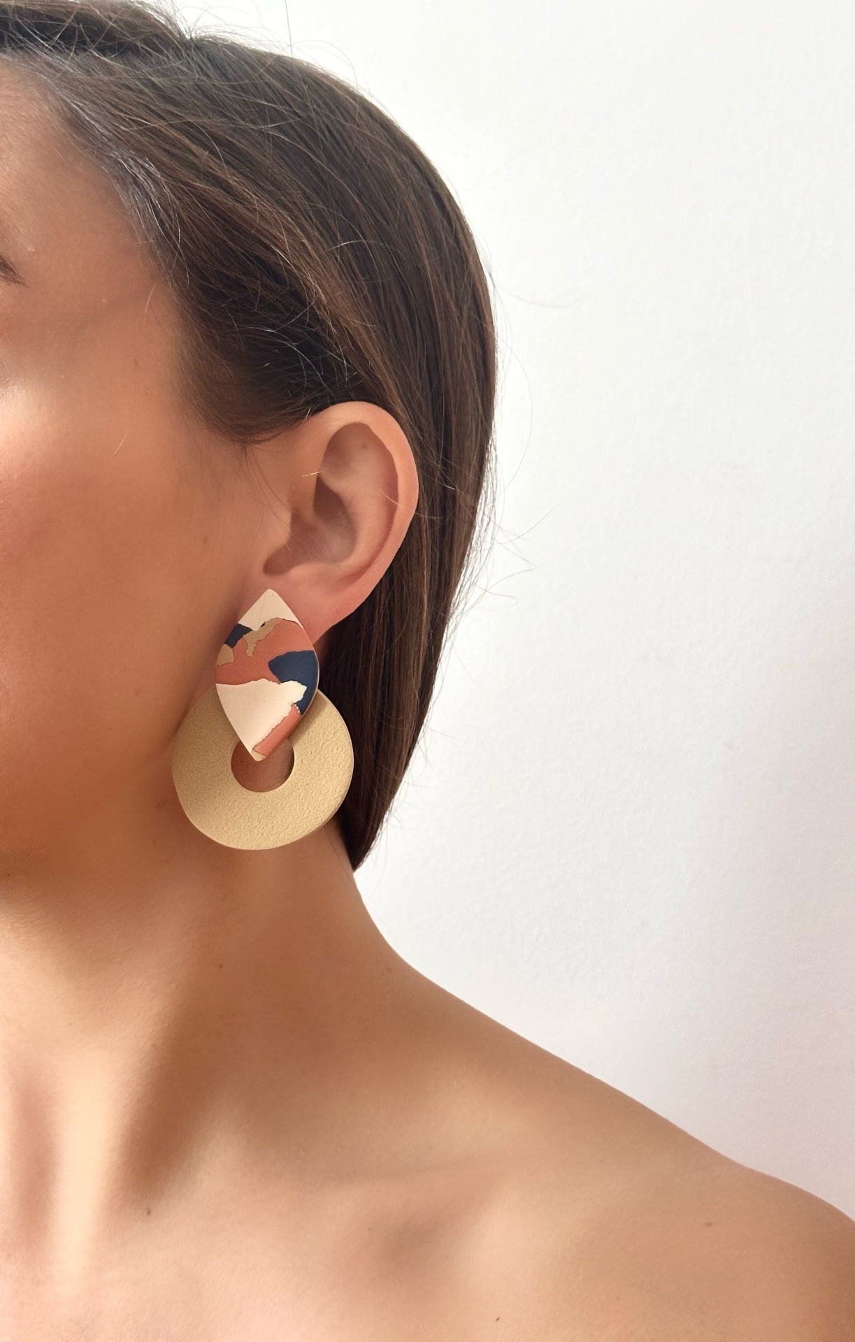 Sandra - padrão tijolo creme e azul escuro 13,60 € 17,00 € Desconto de 20%. IVA incluído. Partilhar Comprar Contactar 1 unidades em stock Saldos. Válido de 9 de Janeiro de 2026 às 00:00 até 31 de Janeiro de 2026 às 00:00. Brincos feitos à mão em argila de polímero com componentes em aço inoxidável. Muito resistentes, leves e confortáveis. As cores podem variar ligeiramente das apresentadas devido às diferentes telas de cada dispositivo.